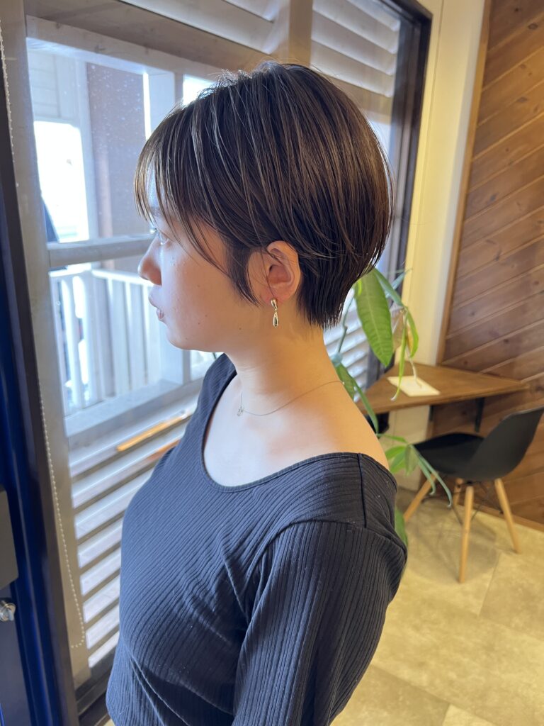 ロングから切る場合ミディアム→ボブ→ショートみたいな段階的な楽しみ方もおススメですが、もともとショート歴が長いお客様なので切ることに迷いなし!笑